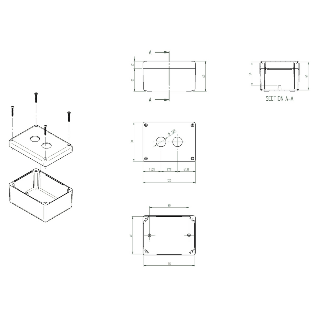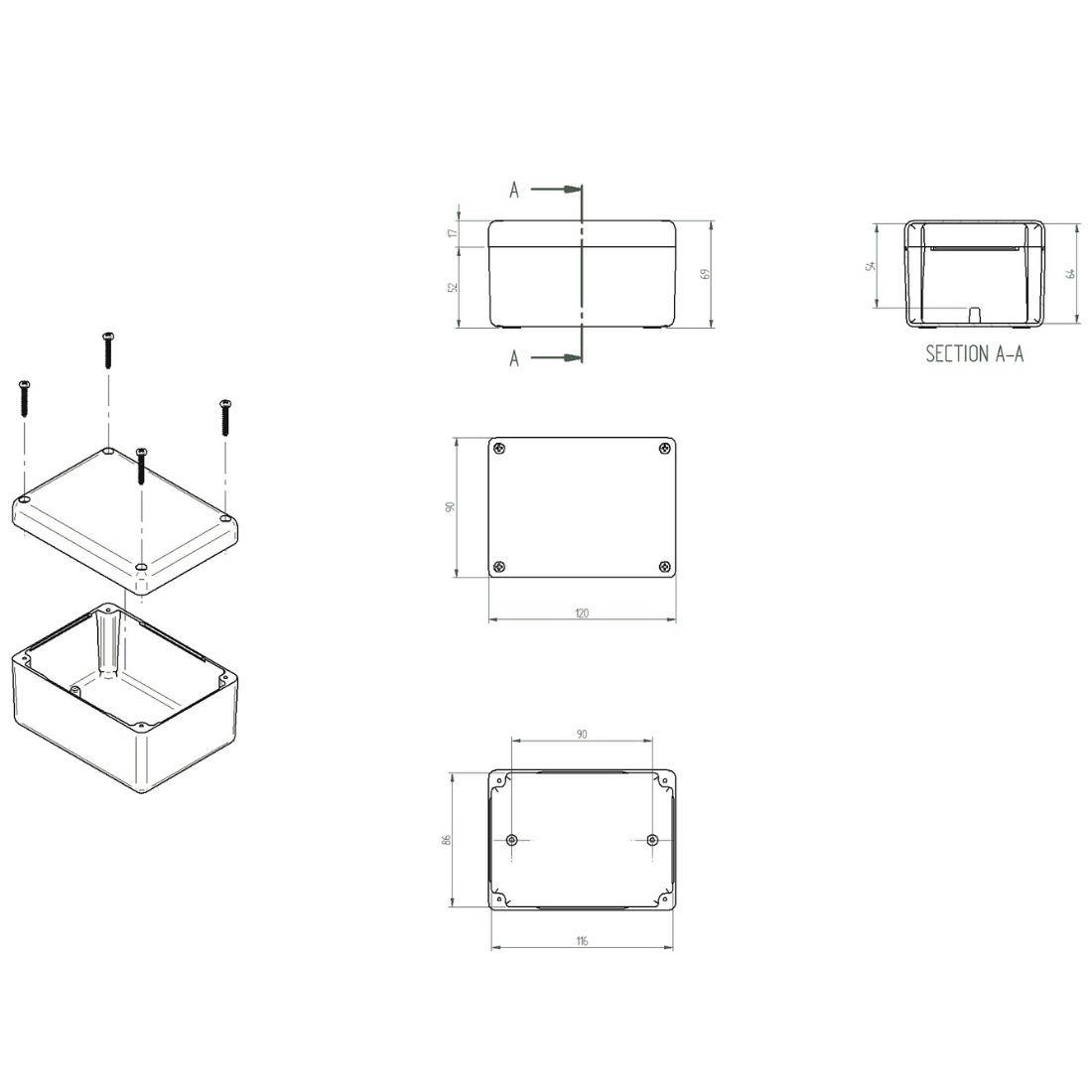 - Dimensões: L: 120mm / C: 90mm / A: 70mm