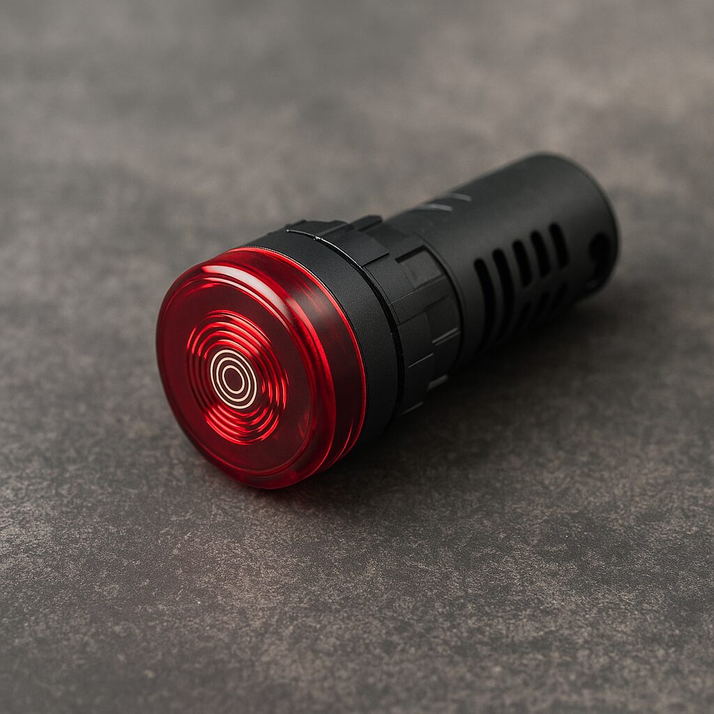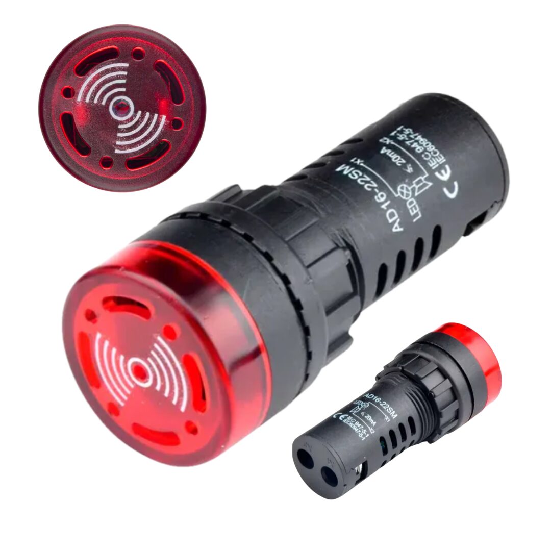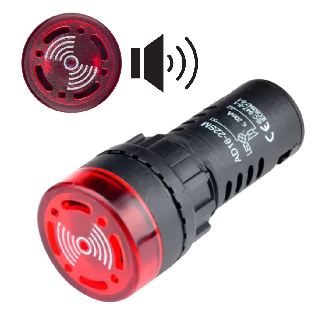 O sinaleiro sonoro é um dispositivo que tem a função de indicar através de um sinal sonoro, ocorrências em painéis elétricos que exigem atenção do operador, como a energização do painel ou de alguma máquina, atuação de alguma emergência, ocorrência de defeitos ou desarmes ou alguma grandeza que está próxima de atingir seu limite.